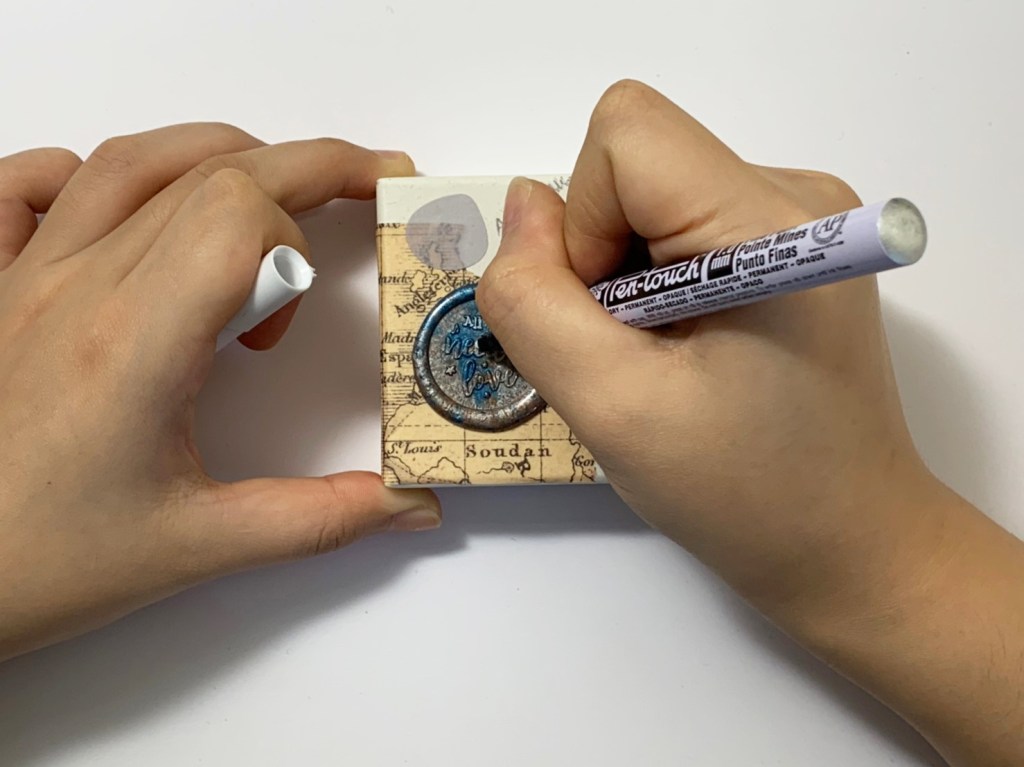 使用油漆筆塗在凸起的地方,讓文字看起來更明顯,油漆筆比較常見有金色、白色、銀色。