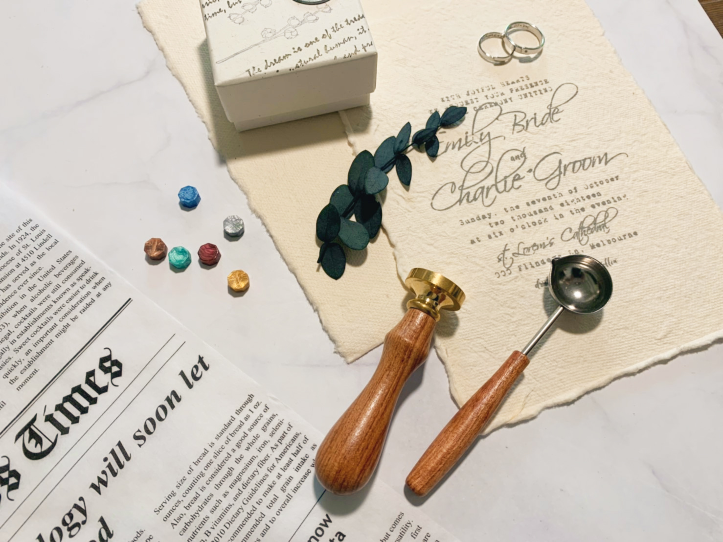 印章、印泥、蠟封塊、裝飾用薄紙、紙膠帶