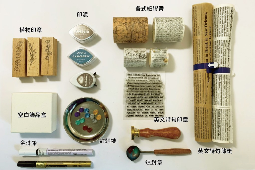 相信喜愛文具的大家,一定收集很多紙膠帶、貼紙吧~把紙膠帶拼貼在首飾盒上, 再親手燙上蠟封章,就能完成獨一無二首飾收納盒!