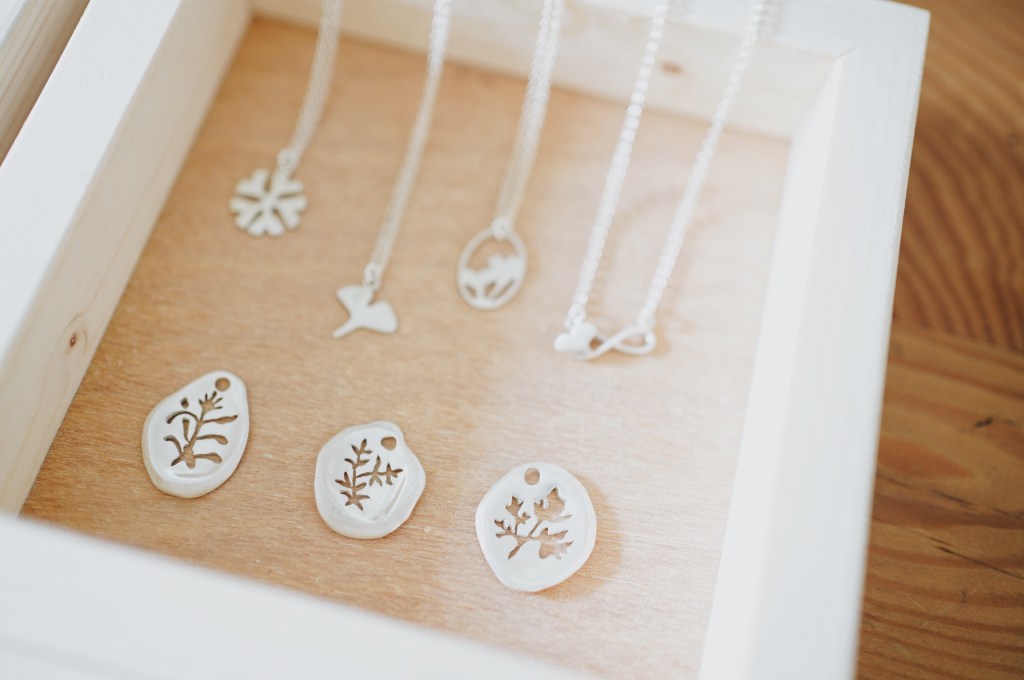 結合了小房子工作室、圖鑑標本收藏陳列以及各種植物相關的銀飾系列