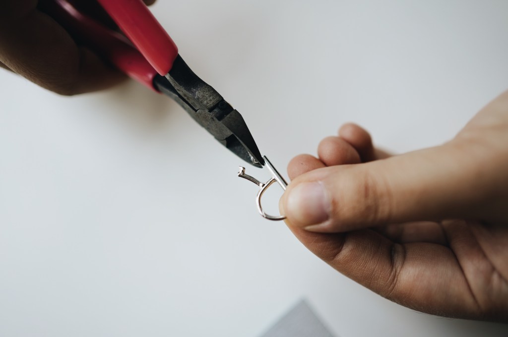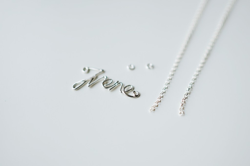 一般會用鋸弓切鋸、銼刀修磨。大家自己在家做也可以單純用砂紙慢慢磨掉,如果有斜口剪鉗也會很有幫助!要小心因為字母銀墜很細,不要太粗暴弄斷啦!