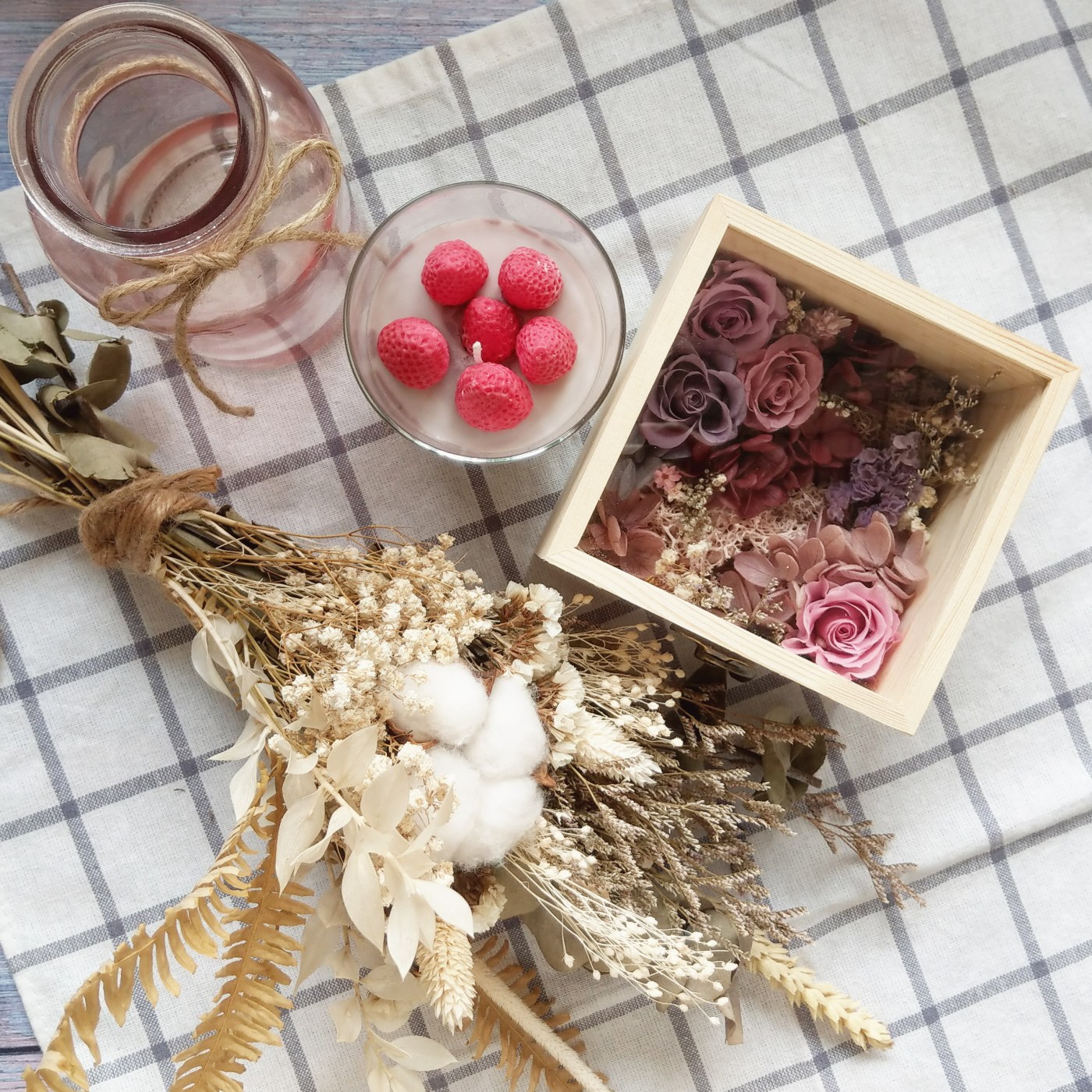 Maruko 最初和手作的緣分是在永生花,後來觸角延伸到耳環設計、熱縮片製作、蠟燭製作、香氛片製作等等。過去資源並沒有那麼多,所以這些手作也都是在近幾年自學的。會開始經營社群,也只是因為希望能夠希望記錄這一切。Maruko 告訴自己,不管再怎麼忙碌,每天都要發一則,有了社群,讓 Maruko 更有動力,花時間在自己喜歡的事物上,讓她感受到無比的快樂,這是手作帶給的的最大意義,也是她一直告訴自己的,要玩得開心。