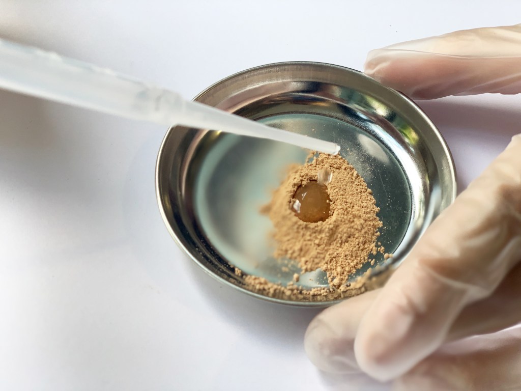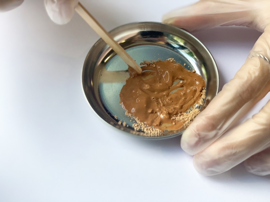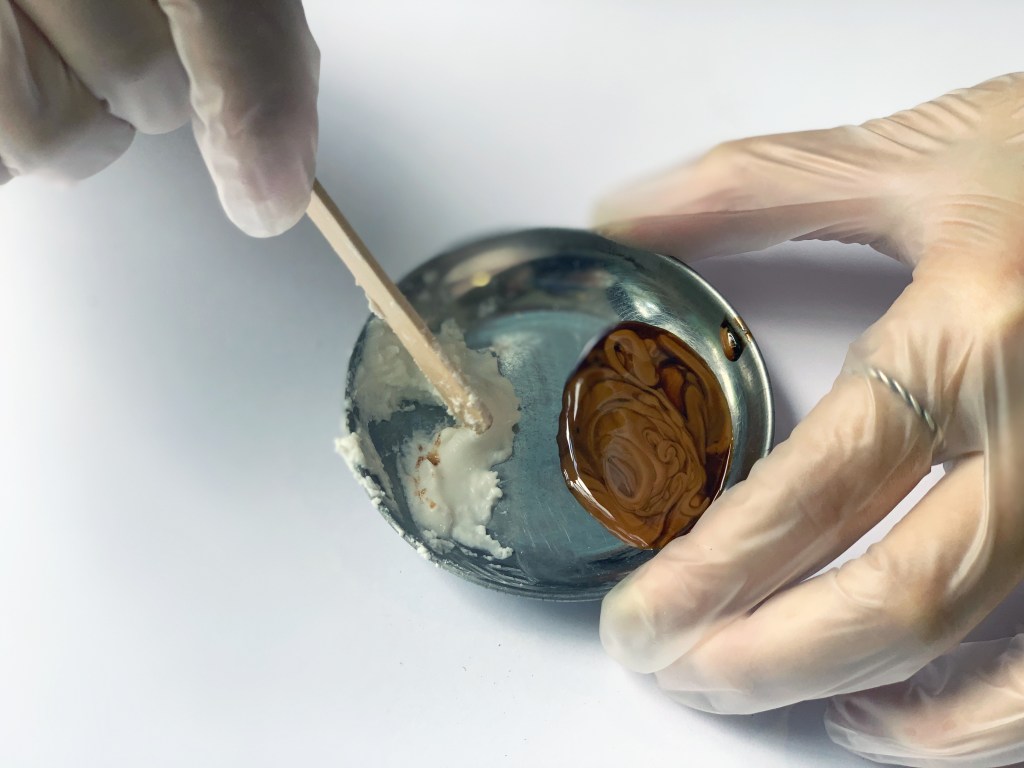 糯米粉加水攪拌成糊綢狀,再取適量與生漆1:1調勻。