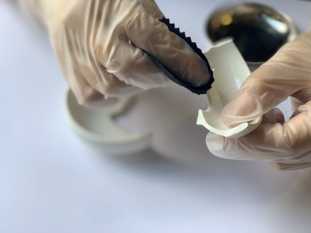修補器物前先清洗接合處,表面不要有油漬髒污。