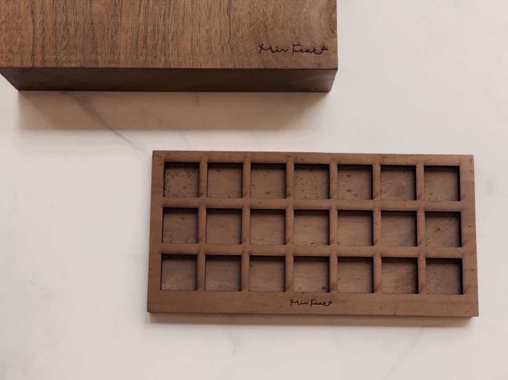 排版出想要的方格大小,請廠商切出想要凹陷的深度,就能夠變成像這樣的陳列盤~