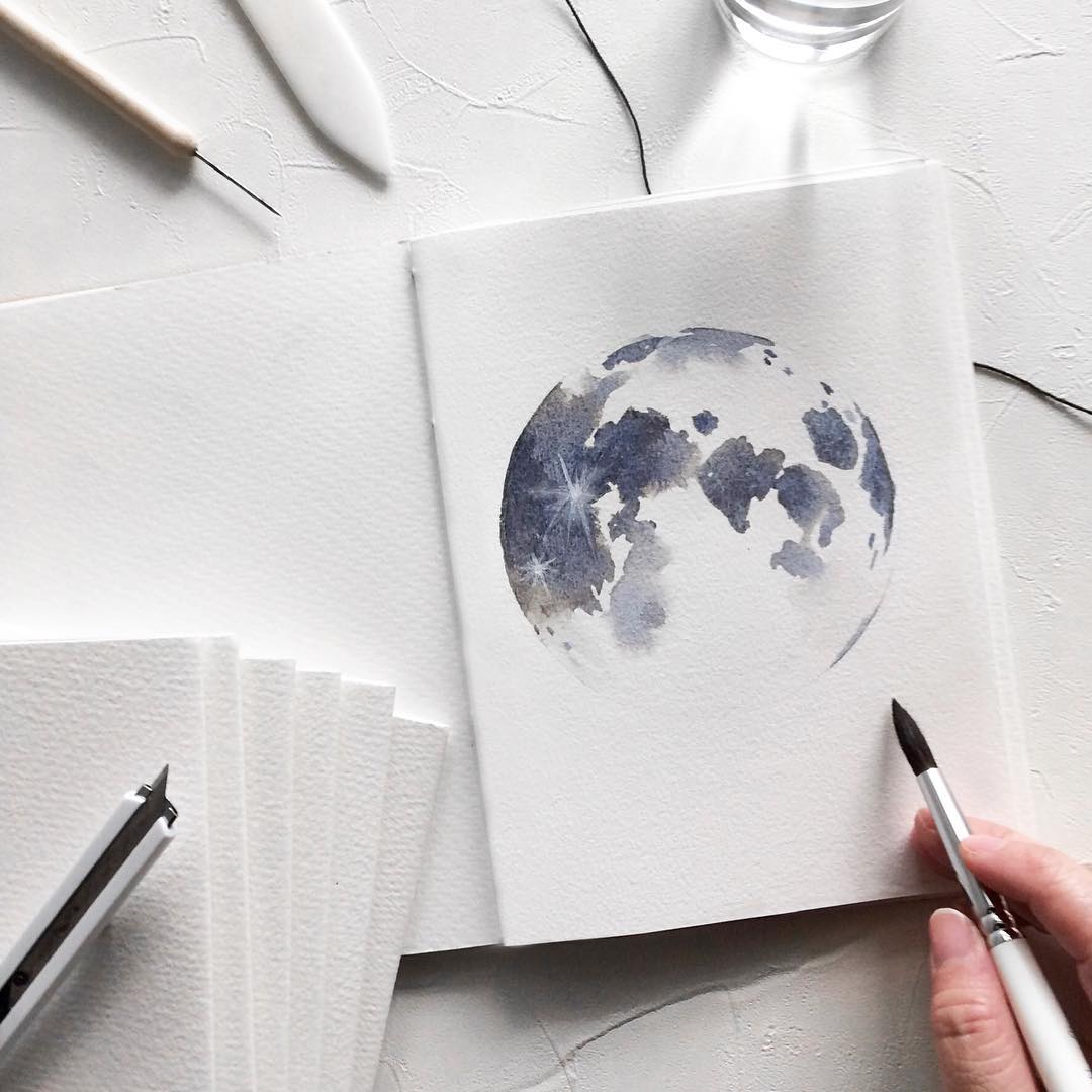 《登月的起源》因為看不慣硬是把水彩畫在手帳紙上那種皺巴巴又不吸水的樣子,於是想做出水彩本界的travelers。這個目標有點誇大,但至少水彩本封面不再是黑色紅色或莫名的水彩畫,而且我們還無法畫得像那樣。