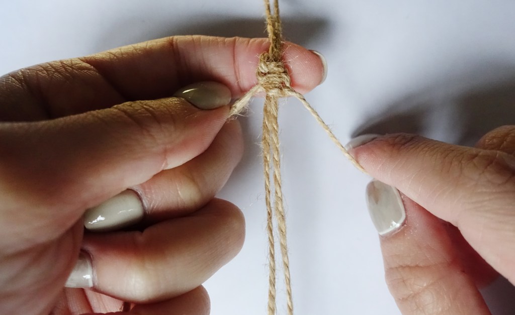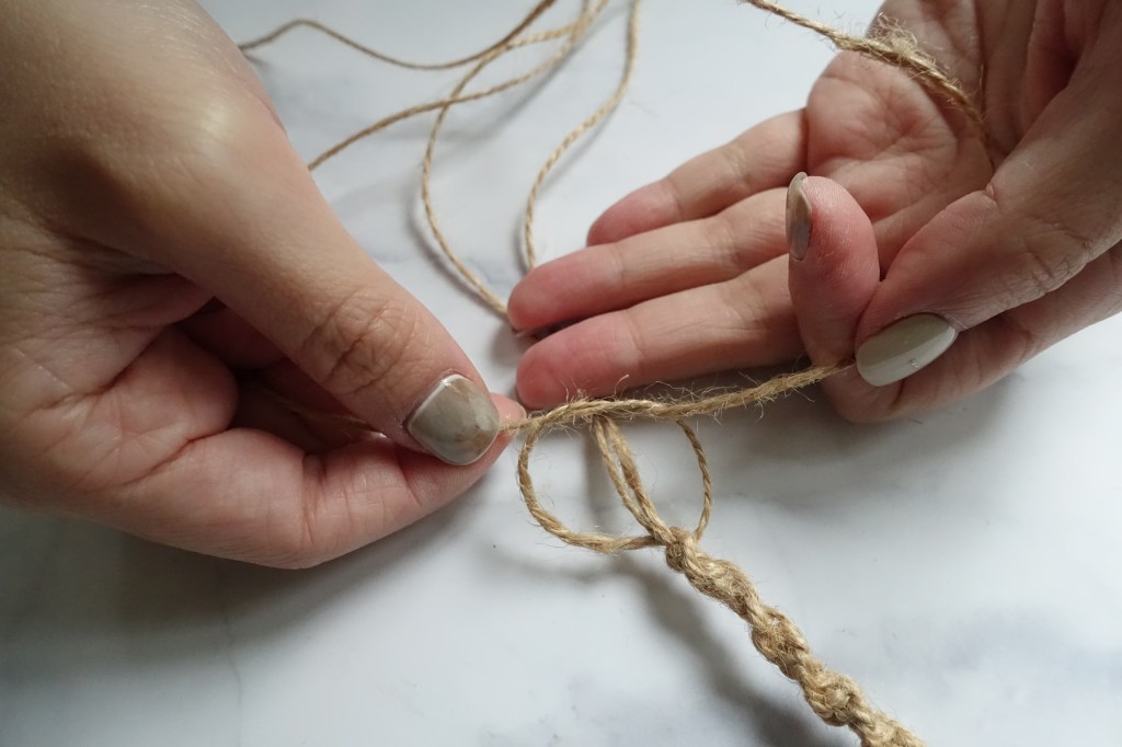 最後抓起尾端的線段再用一段麻線打結收尾,尾巴就會變成流蘇囉