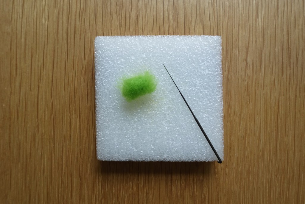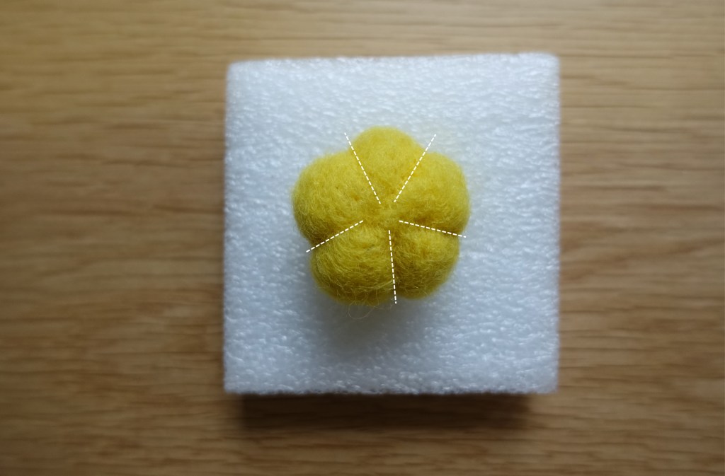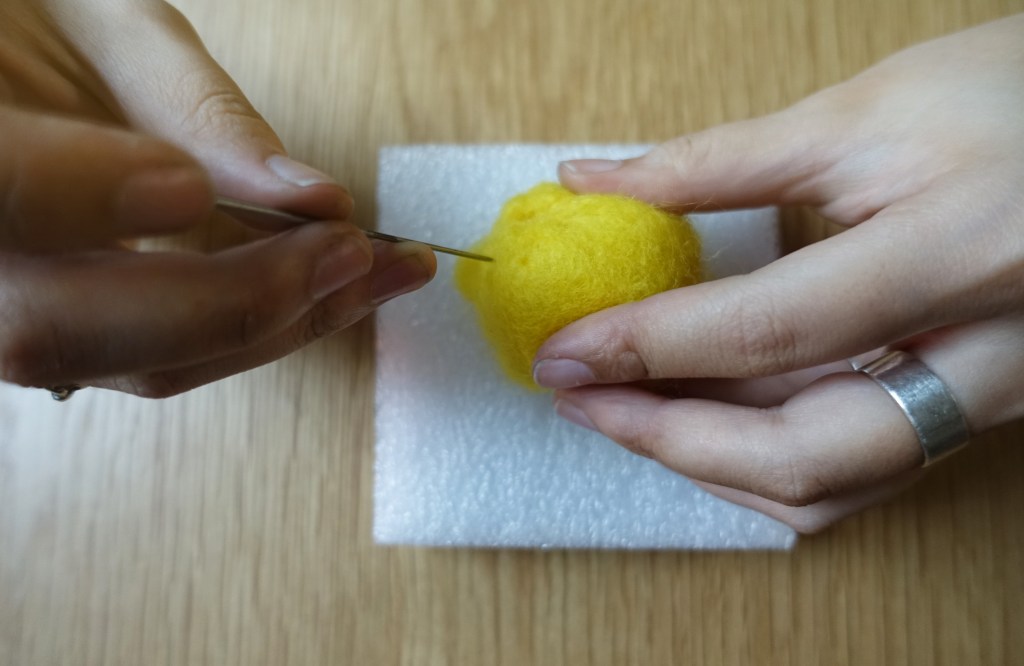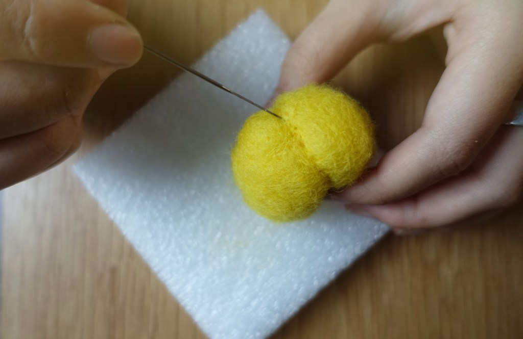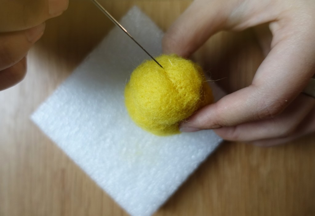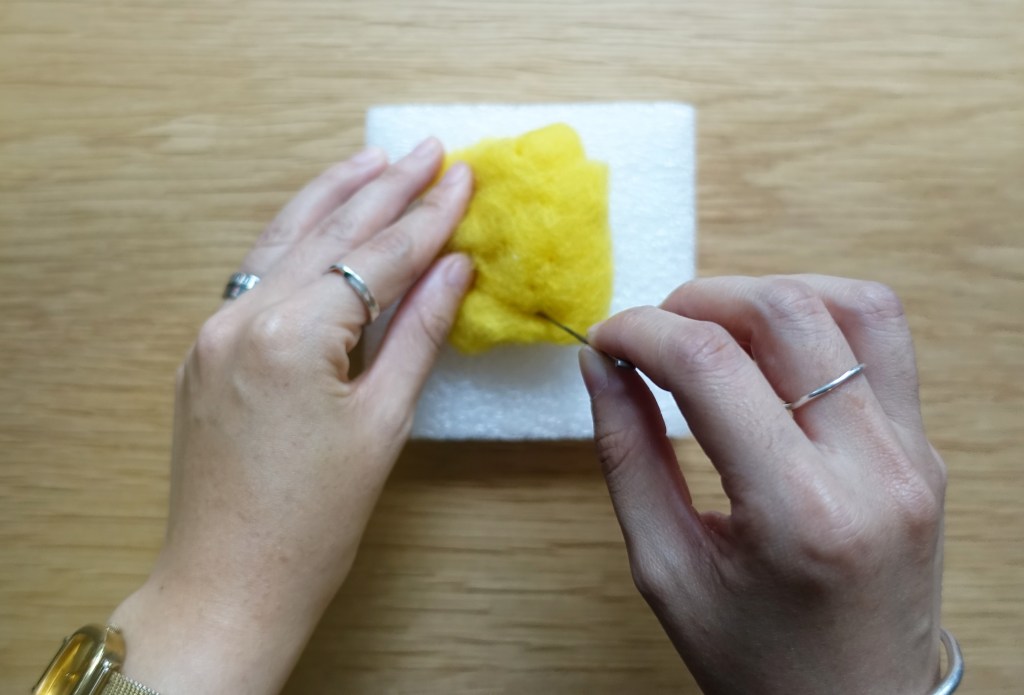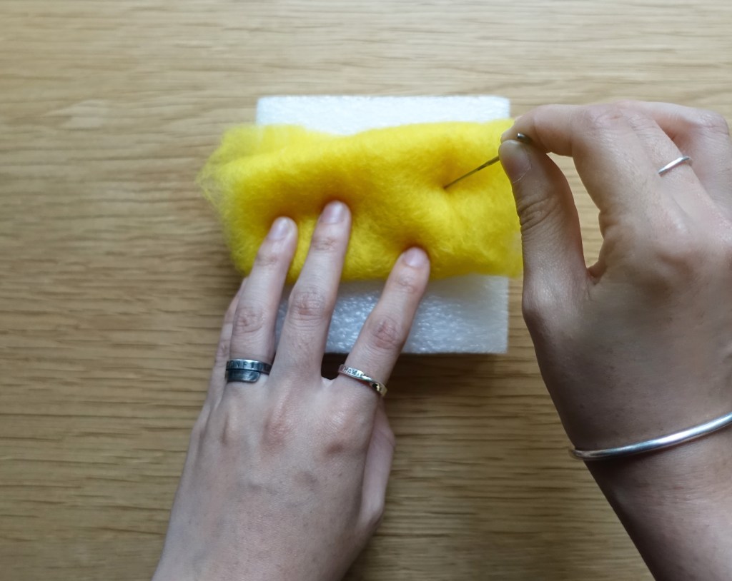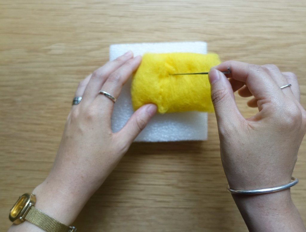 用戳針在四周將羊毛慢慢戳緊密,會發現戳過後的羊毛會被固定住,