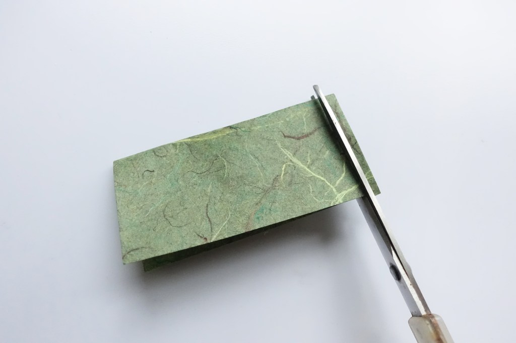 從緞帶中間的兩側剪出兩道線(注意不要剪斷囉!)