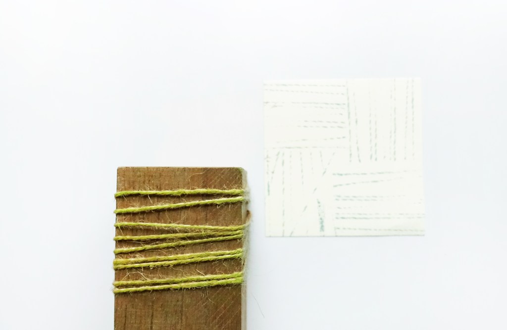 用木塊繞上麻繩,可以當成條紋效果的「印章」